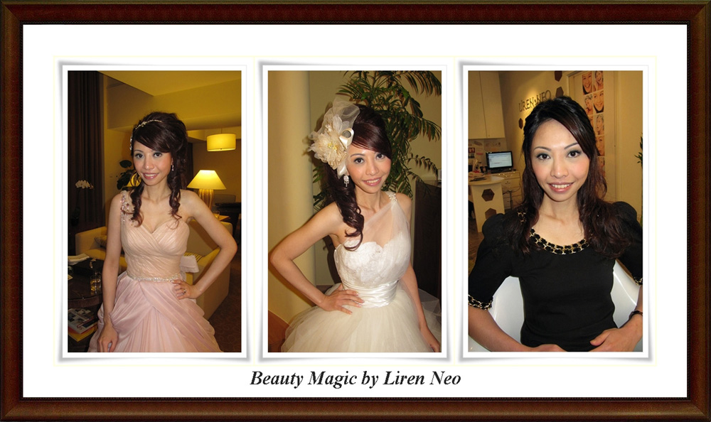 As a bridal makeup artist, Liren's philosophy is to bring out the natural beauty of every woman. Liren has experience with various types of face shapes and contours as well as eye enhancement adjustments and will definitely bring out the beauty hidden within you. Thus, Liren's repertoire of makeup kits are all naturally coloured ones to enhance a person's natural features through both macroscopic and microscopic analysis of a person's face. Liren does not believe that concealers are a must and that there is no such thing as a standard operating procedure when it comes to makeup. Rather, she is of the philosophy that makeup artists must utilize a unique combination of having a masterful eye, skilful hands, and a sharp mind with a resilient and cheerful personality that strives for perfection. Via Estee Lauder's line of M.A.C cosmetic products, Liren's 'less is more' ideals have led to thousands of beautiful and happy clients. Till today, Liren still teaches makeup courses to amateurs and veterans alike as well as aspiring makeup artists. Despite her success, she refuses to become complacent and still approaches every client with the same enthusiasm and zeal that she had when she first started painting faces years ago.