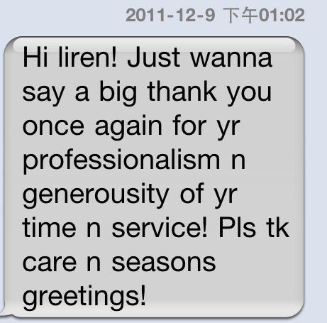 Hi LiRen thanks for e make up last sat. My rom went smoothly and very successful. Cheers. Both mi and Keith agreed you are very very professional o!:-