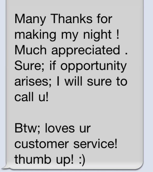 Sincerely thanks for changing me to another person tonight.. Will recommend your services to my friends